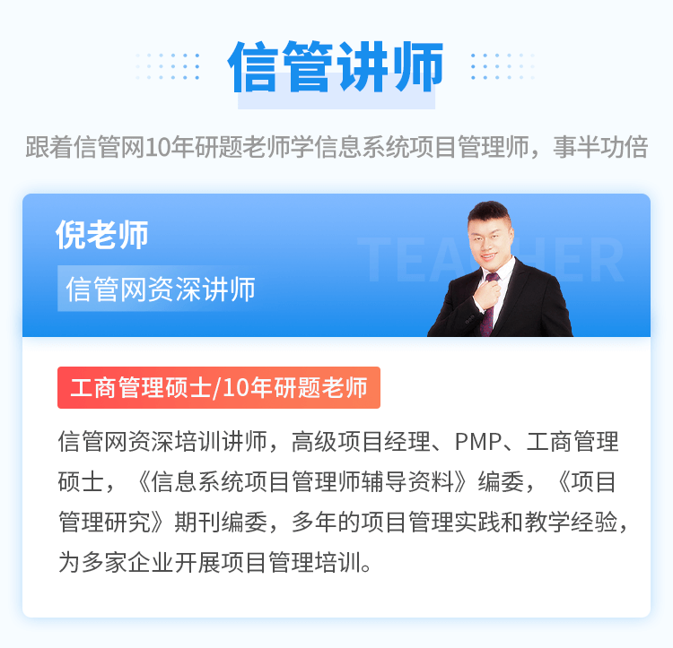 信管網(wǎng)為信息化考試與服務(wù)專業(yè)平臺,目前開設(shè)有信息系統(tǒng)項目管理師、系統(tǒng)規(guī)劃與管理師、系統(tǒng)集成項目管理工程師、信息安全工程師考試與學(xué)習(xí)服務(wù)。提供了包括考試報名、考試課程、成績查詢、真題發(fā)布、資料下載、案例分析、論文、考試教程、在線題庫、每日一練、章節(jié)練習(xí)、信管人才、論壇交流等服務(wù)。我們將為廣大信管考友提供專業(yè)、及時、全面、貼心的考試服務(wù),立足于為廣大信管考友建造一個優(yōu)質(zhì)的學(xué)習(xí)平臺,讓考生都能夠享受學(xué)習(xí),順利通關(guān)。