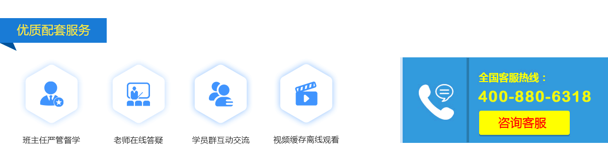 自有培訓(xùn)輔導(dǎo)資料、多位經(jīng)驗(yàn)豐富培訓(xùn)老師,課程內(nèi)容豐富。一對(duì)一復(fù)習(xí)計(jì)劃、郵寄紙質(zhì)資料、提供配套習(xí)題練習(xí)和考前沖刺資料、班主任一對(duì)一學(xué)習(xí)監(jiān)督、隨時(shí)向老師提問(wèn)等服務(wù)。